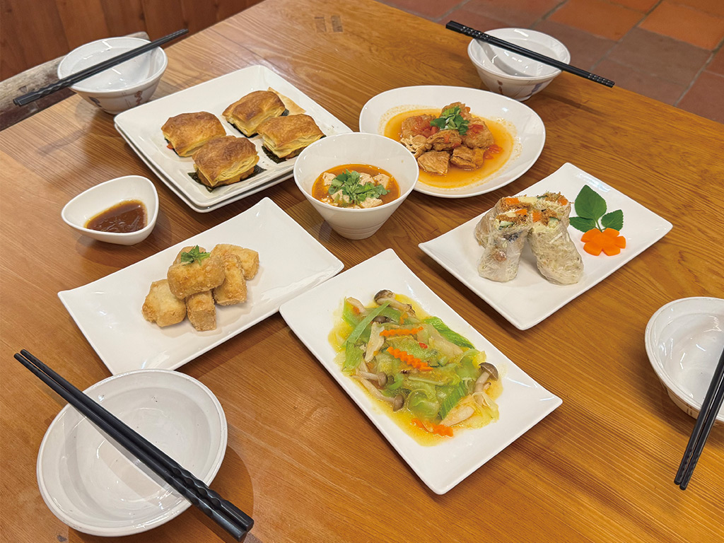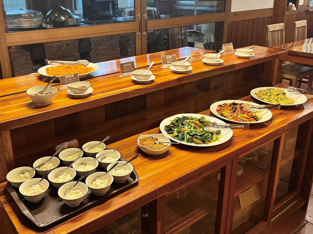 老五民宿提供蔬食餐點(晚餐、早餐),嚴選在地友善耕種新鮮蔬果,由五嫂親自設計健康蔬食料理,讓平凡的健康好滋味,帶給每位旅客最輕鬆愉悅的蔬食體驗。