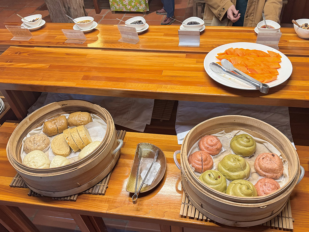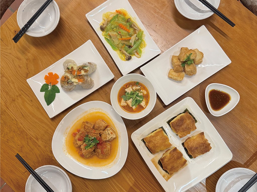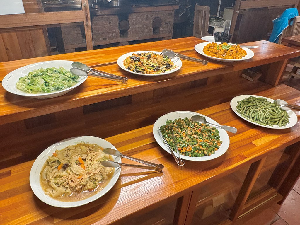老五民宿提供蔬食餐點(晚餐、早餐),嚴選在地友善耕種新鮮蔬果,由五嫂親自設計健康蔬食料理,純粹的健康好滋味,讓旅客享受輕鬆愉悅的蔬食饗宴。 *老五民宿蔬食餐廳,晚餐供應當季蔬食合菜、早餐供應能量蔬食餐點與老五冒煙饅頭 (全素者請提早告知)。 *包棟團體、瑜珈團體、各式課程團體,採用自助式蔬食料理(晚餐、早餐)。