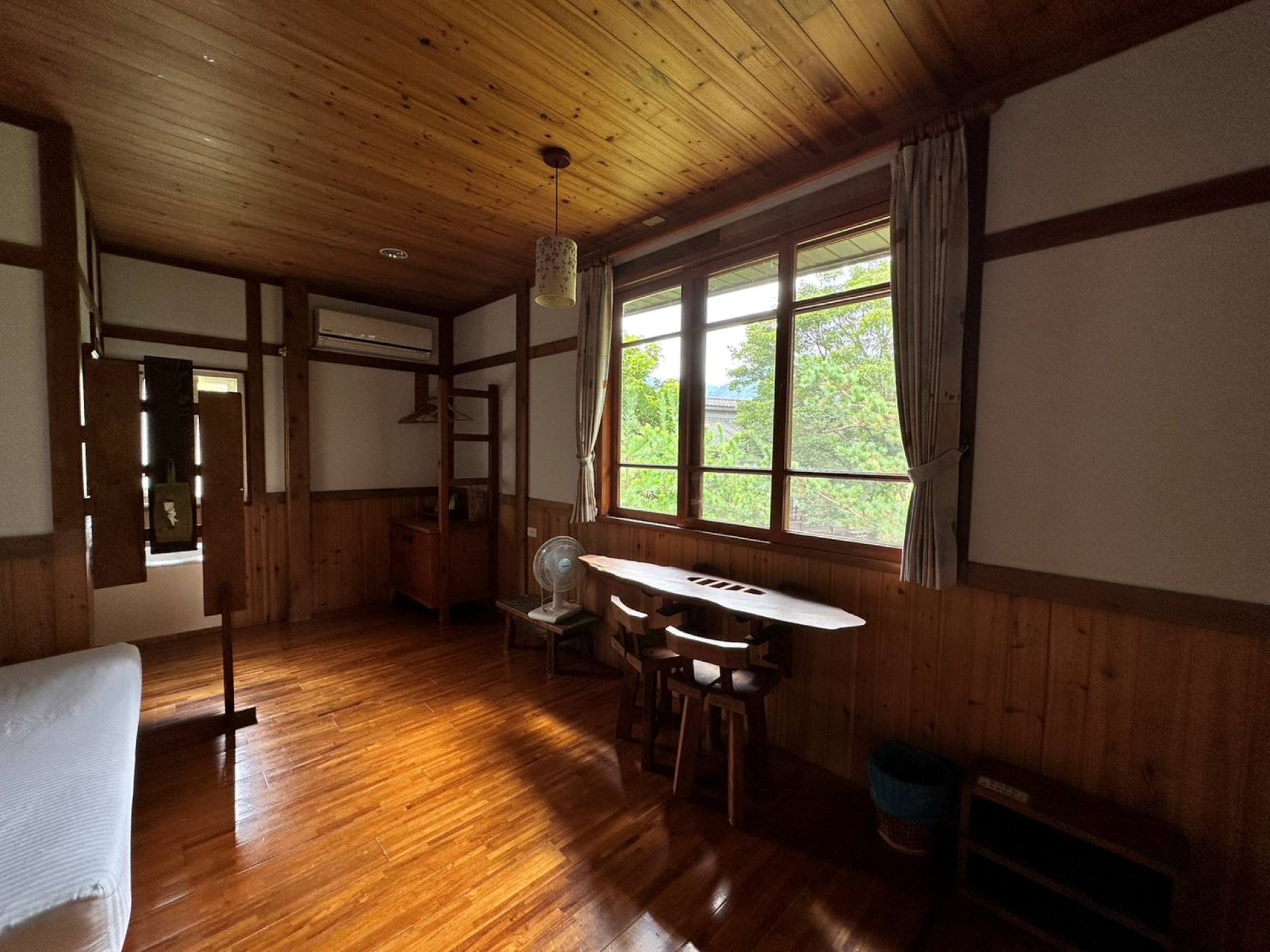 冷暖空調、大浴巾、洗髮精、沐浴乳、吹風機、熱水壺、茶杯、茶几桌、室外拖鞋